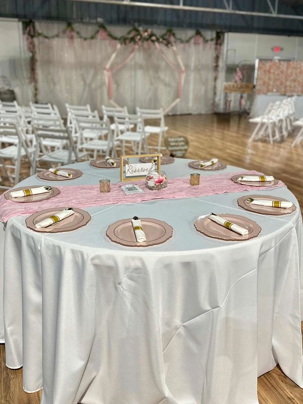 Tables and Chairs are included in all rentals. Linens are available for just the cost of cleaning/pressing.
